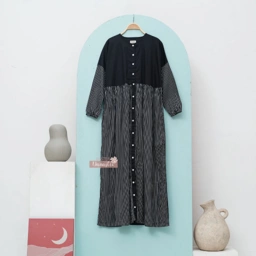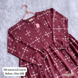 EVITA Material : Katun Jepang & Kain rayon Tidak Terawang, adem dan sangat nyaman Freesize (Batwing) LD : 110 cm[SM] LD:125cm [LXL] Full kancing Panjang Baju : 130-135 cm Ada saku longgar kanan